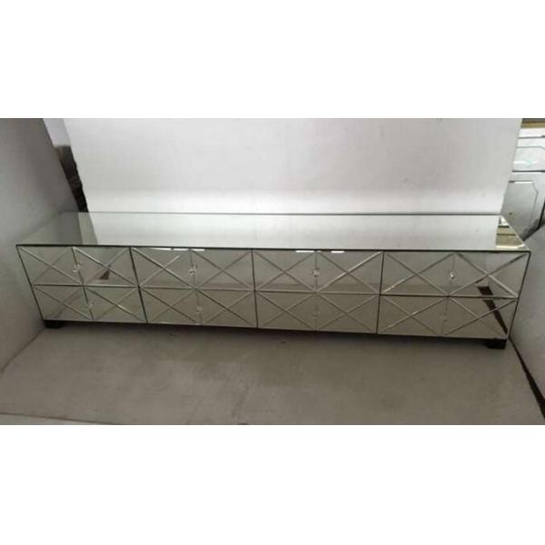 1. Modern mirrored TV table made of wooden and beveled edge glass mirror.