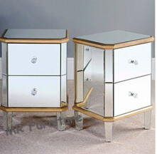 The 2 Drawer Bed Side Table. Silver mirror with gold trimming, it is luxry and unique design..