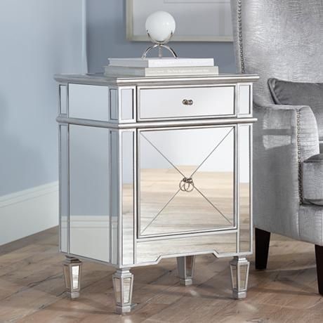Wooden Trimming Mirrored Side Tables For Bedroom Gold / Silver Optional Images |