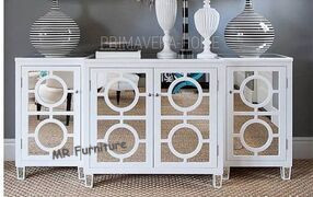 White Mirrored Side Board Circles Door Pattern Style Wooden Material Images |